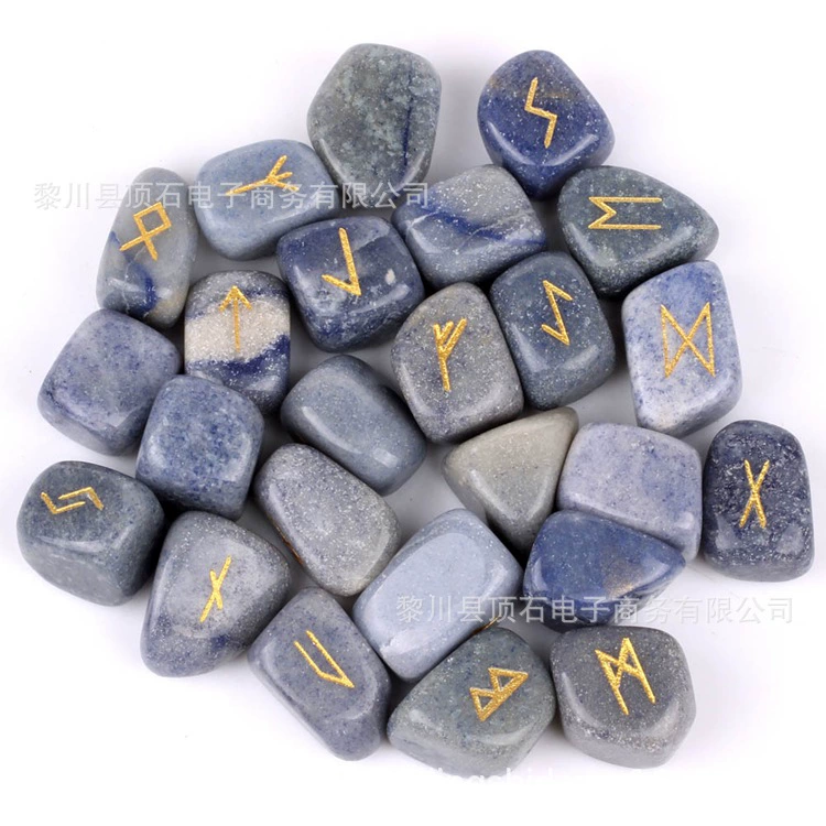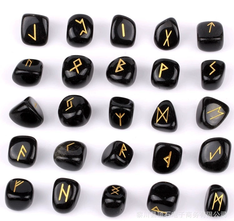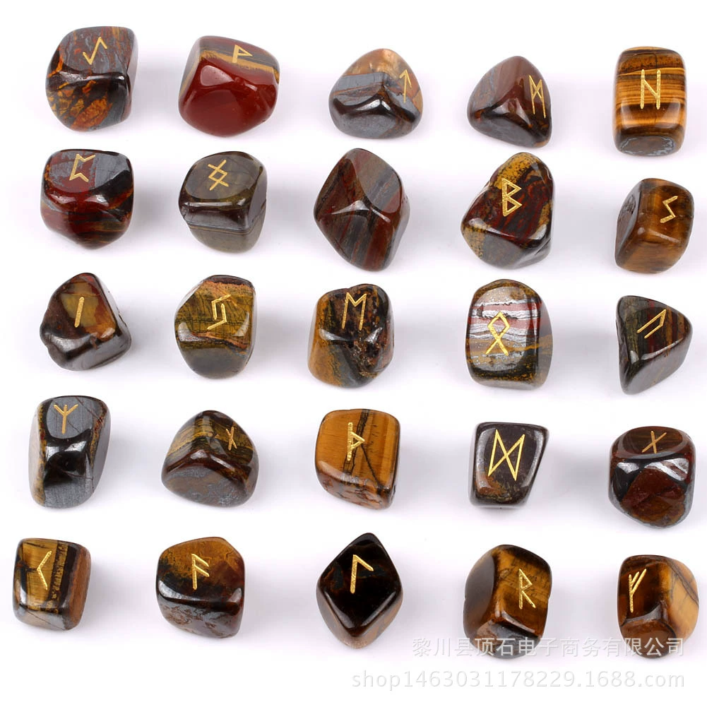 Cross-border spot supply of natural semi-precious stone runestone crystal rune stone with engraved rune symbols 25 ornaments