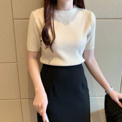 Cross-Border spring new pullover women's autumn and winter slim top Western style short-sleeved sweater all-matching bottoming shirt