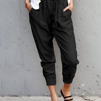 | nameOriginal | Cross-border Summer New Cotton and Linen Solid Color Simple Lace-up Casual Pants Women's Amazon Slim-fit Slimming Cropped Pants |