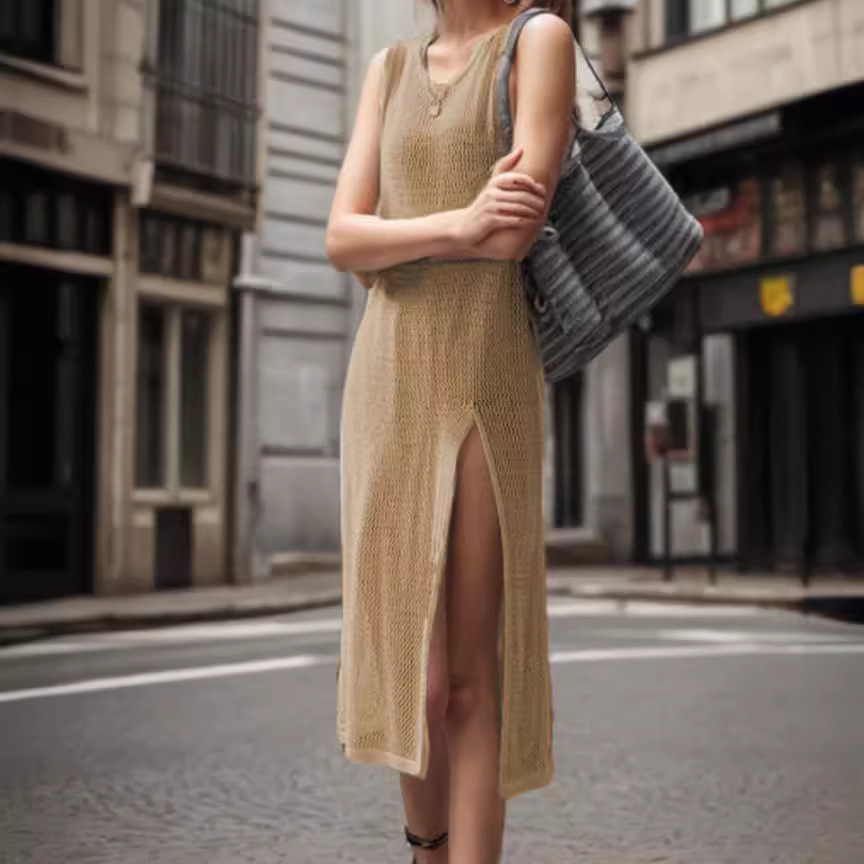 | nameOriginal | Cross-border Summer New European and American Women's Hollow Split Knitted Sunscreen Cover Foreign Trade Loose Long Beach Dress Women |