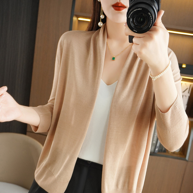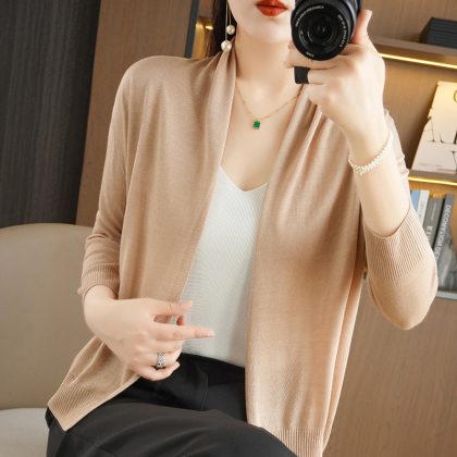 | nameOriginal | Cross-border Summer Tencel V-neck Knitted Cardigan Jacket Women's Thin Simple Loose Seven-sleeve Sun-proof Air-conditioning Shirt |