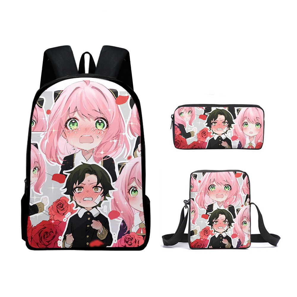 | nameOriginal | Cross-border three-piece suit spy play house spy X family backpack burden relief spine protection primary school student schoolbag |