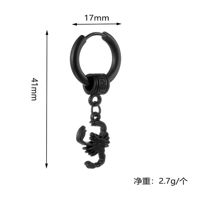 | nameOriginal | Cross-border titanium steel scorpion pendant trendy men's design personality earrings wholesale European and American fashion street hip-hop ear bone nail |