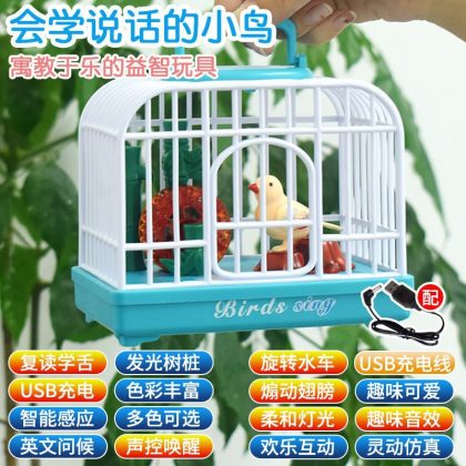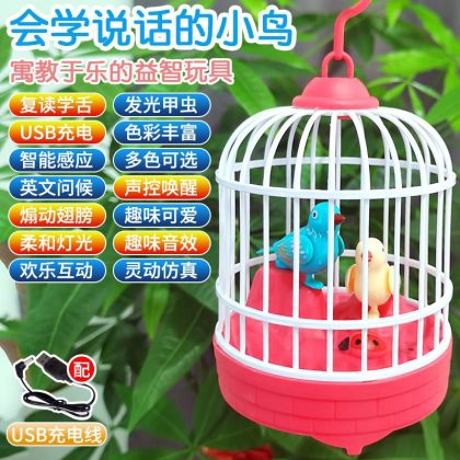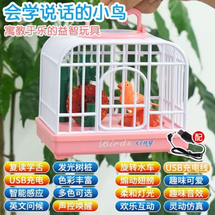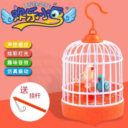Cross-border tremolo electric voice control birdcage puppy cage light simulation call children's outdoor stall toys wholesale