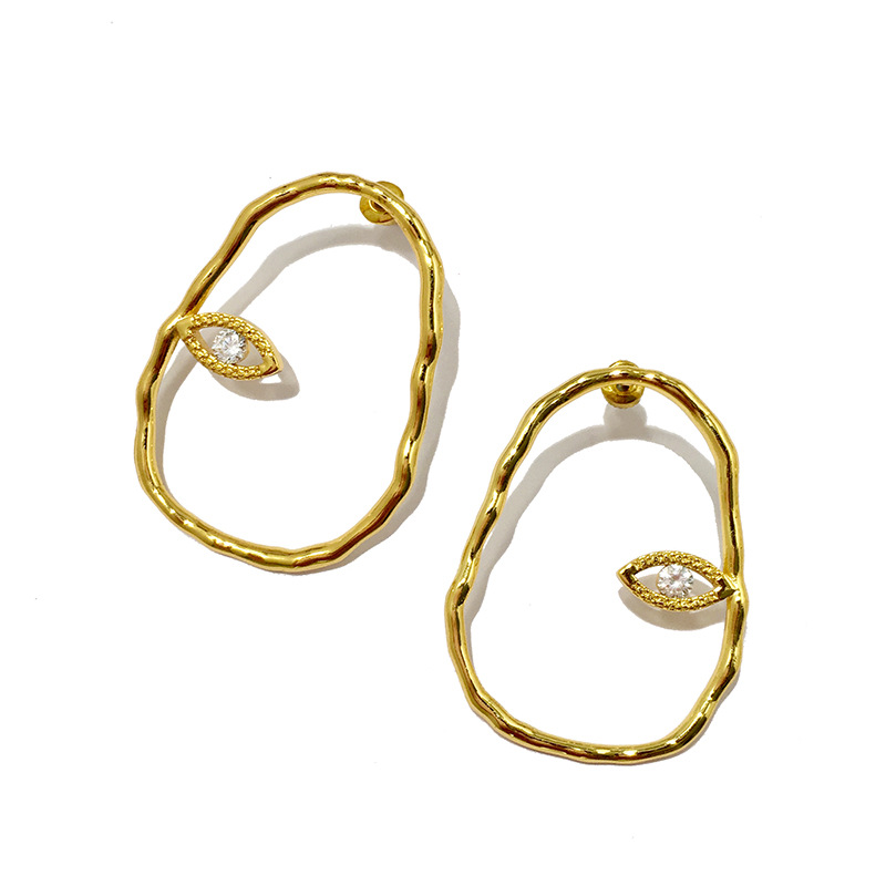 Cross-border wholesale fashion simple smooth irregular box diamond eyes earrings niche accessories