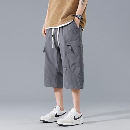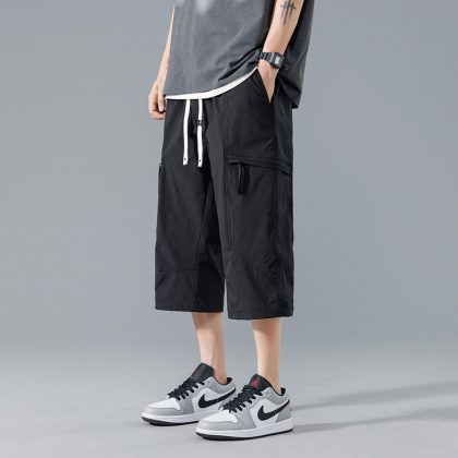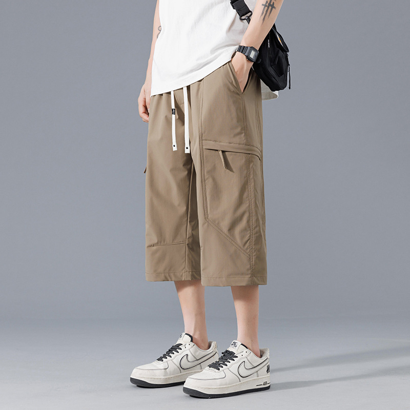 Cross-border wholesale tooling cropped pants men's summer 2024 new ice silk thin leisure tide brand loose a generation of hair