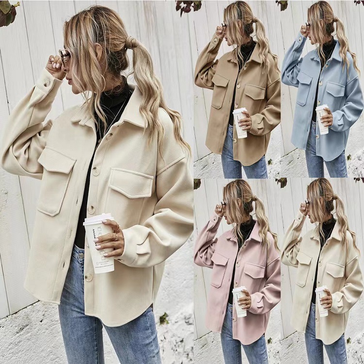 | nameOriginal | Cross-border Women's European and American New Fashion Solid Color Single-breasted Woolen Coat Casual Coat Lapel Loose Women's Top |