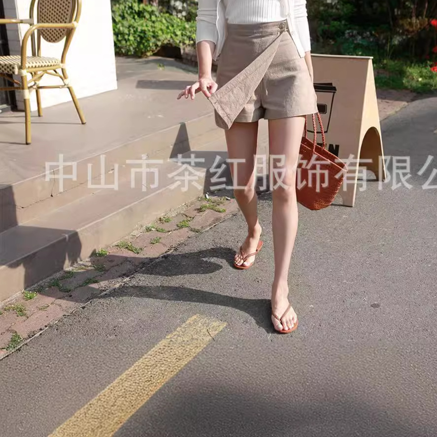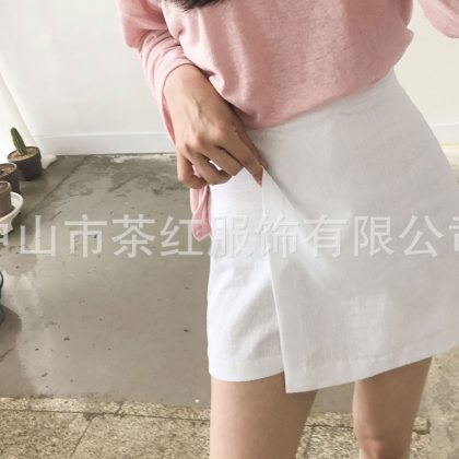 | nameOriginal | Cross-border Women's Summer A- line Short Skirt Fake Two-piece Solid Color Cotton High Waist Casual Shorts |