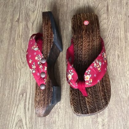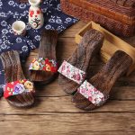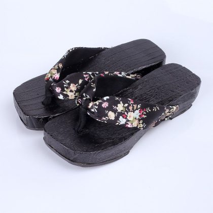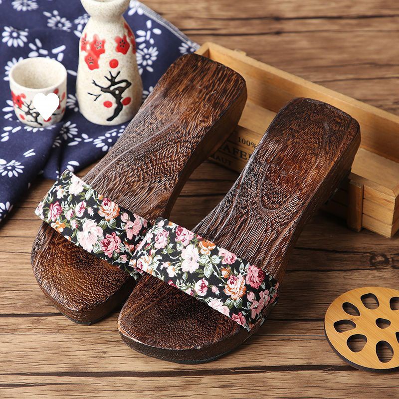 Cross-border Wooden Floor Slippers with Height 4cm Japanese-style Clogs Women's Mid-heeled Shoes Herringbone Sandals Anime Herringbone Shoes