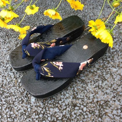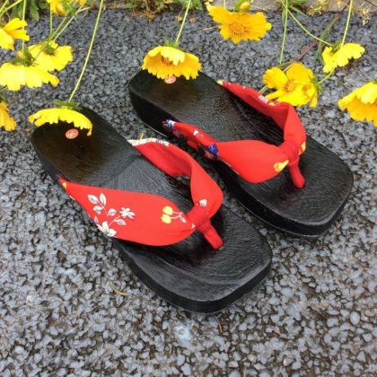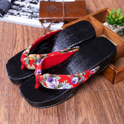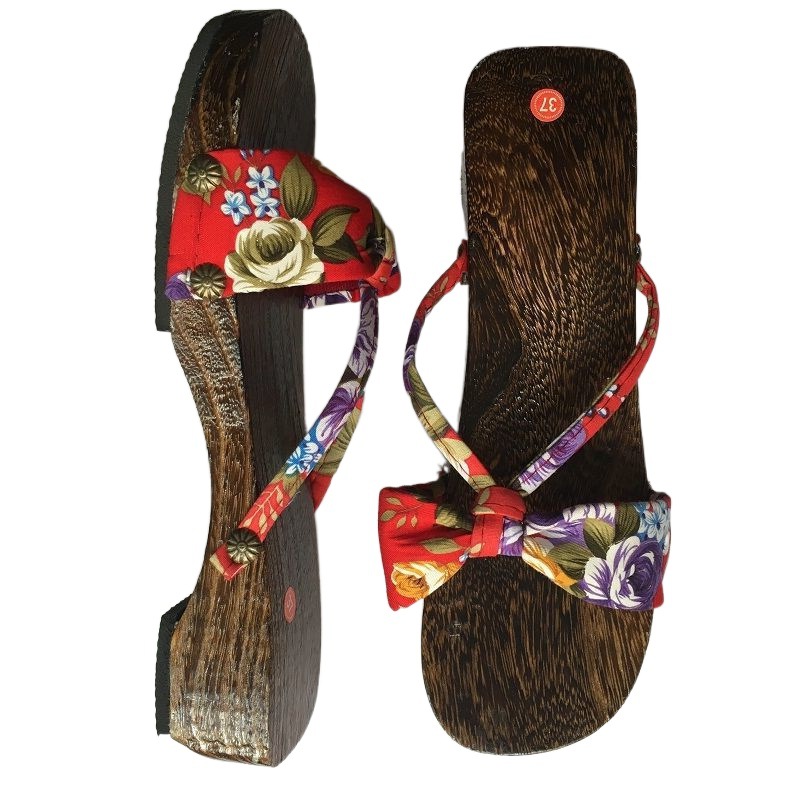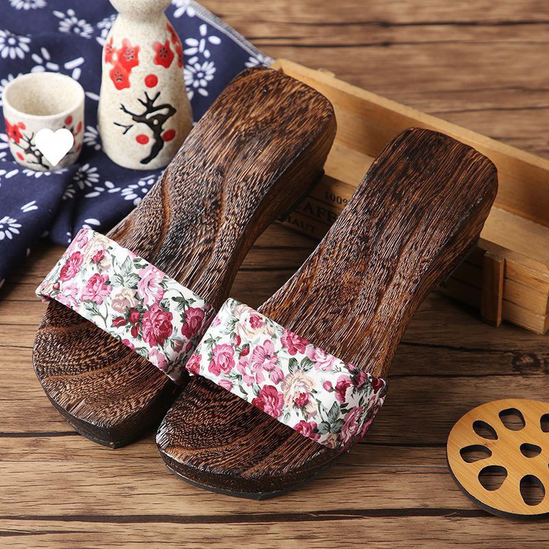 شباشب أرضية خشبية عبر الحدود بارتفاع 4 سم على الطراز الياباني قباقيب نسائية بكعب متوسط ​​صنادل متعرجة أحذية أنيمي متعرجة
