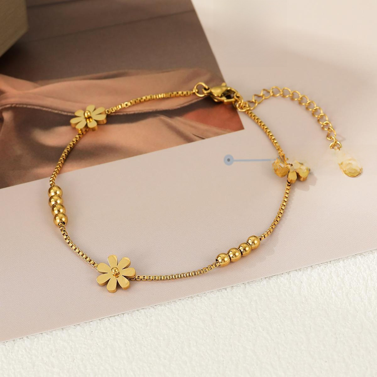 Cross-mirror Daisy bean transfer beads titanium steel anklet female sexy anklet diy bead chain girlfriends leg ring hot sale