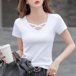 | nameOriginal | Cross slim design v-neck top short-sleeved t-shirt |