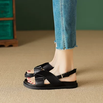 | nameOriginal | Cross-strap thick-soled sandals for women summer 2024 new black versatile flat-soled Roman shoes large sizes 41 to 43 |