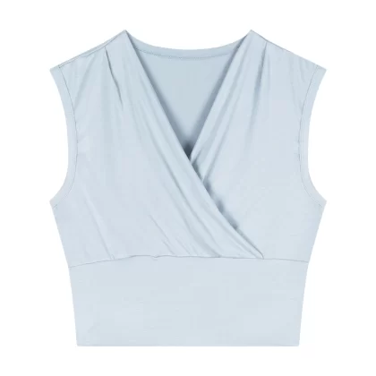 سترة محبوكة قصيرة ضيقة ذات ثنيات متقاطعة على شكل حرف V