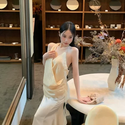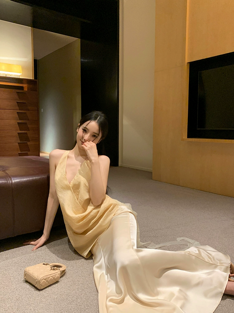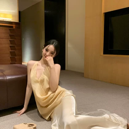 Cross V-neck slim design backless halter neck strap
