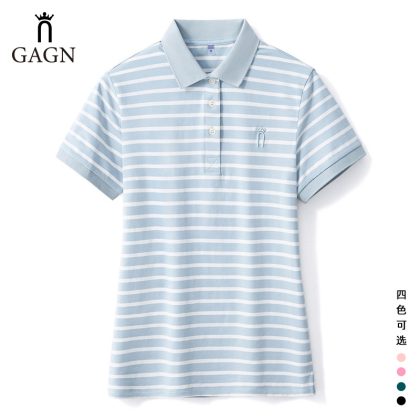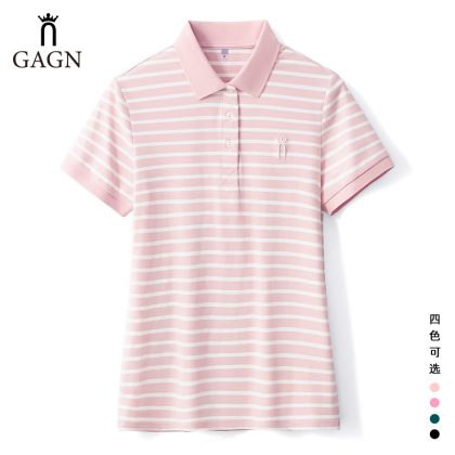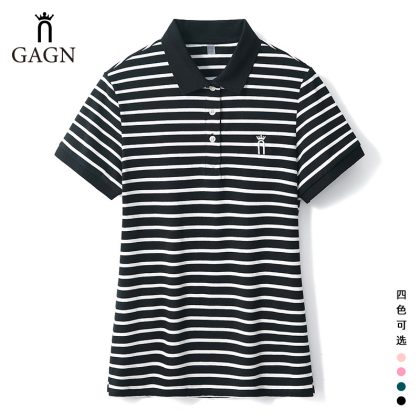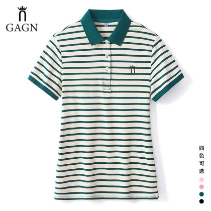 Crown embroidery heavy industry high quality hot rhinestone outer single lapel T-shirt women's yarn-dyed slit cotton women's polo shirt
