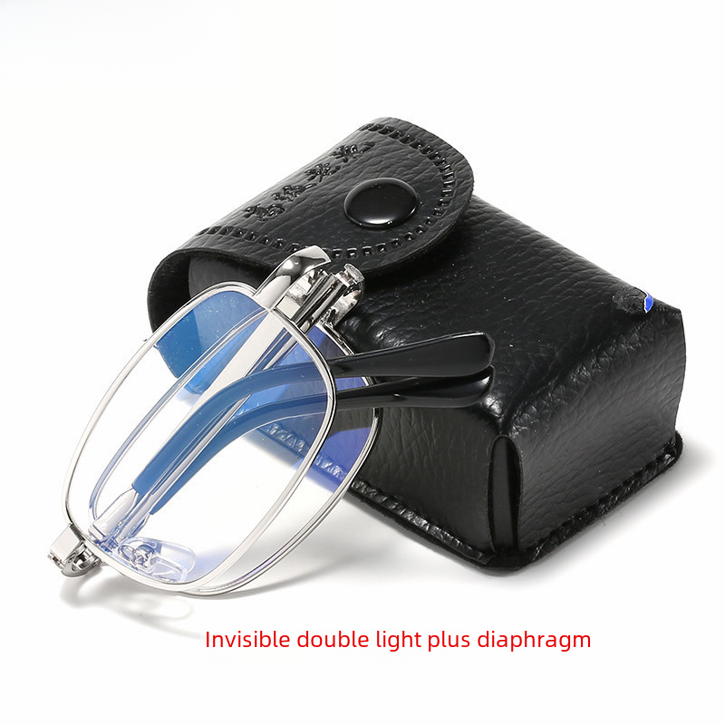 Crystal Degree Standard High Definition Resin Tablet Portable Zipper Bag Folding Dual Light Presbyopic Mirror Quality Leather Box Folding Mirror Wholesale