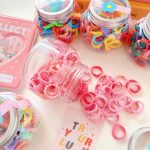 رباط شعر للأطفال بألوان الحلوى الأساسية اللطيفة، شريط مطاطي وردي، 100 قطعة حبل شعر للأطفال