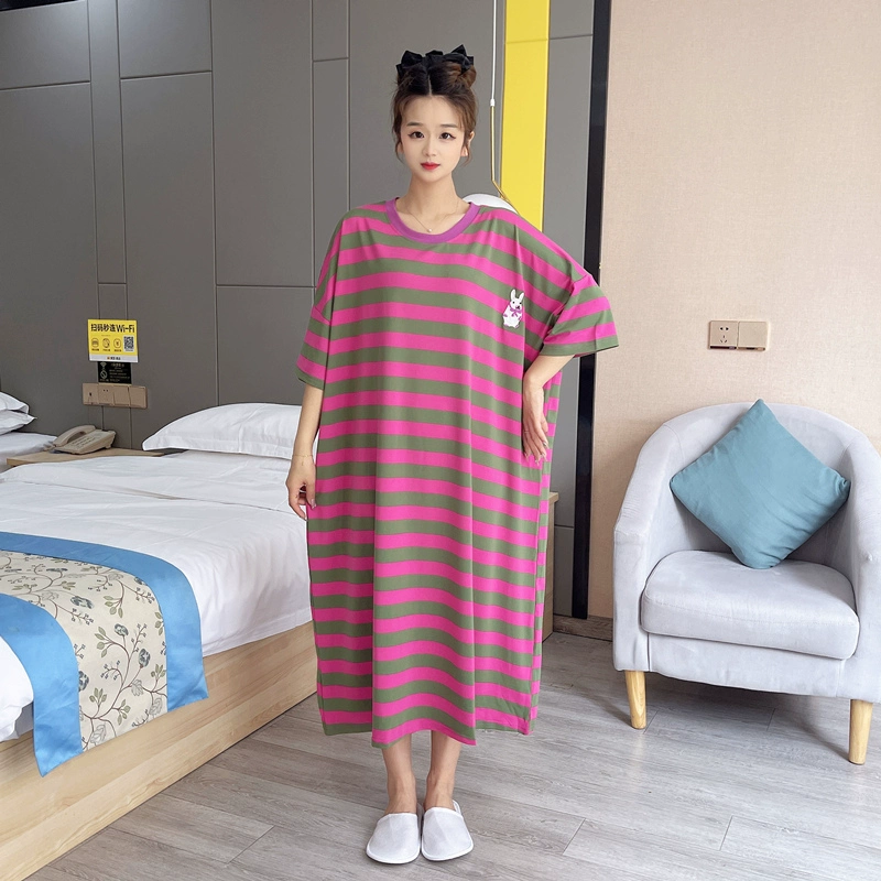 | nameOriginal | Cute bunny plus size striped cotton summer nightgown |