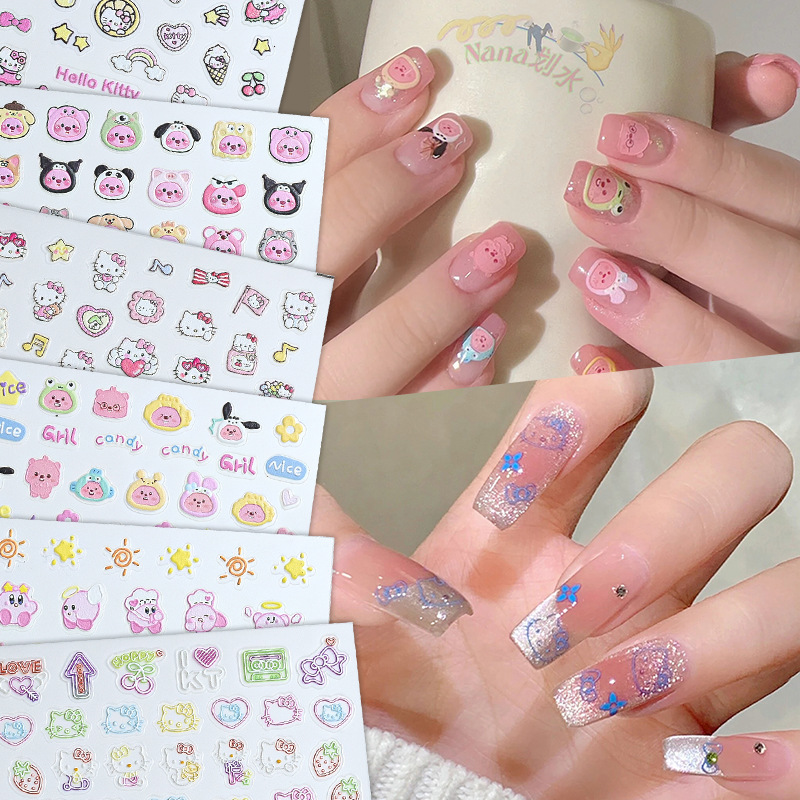 | nameOriginal | Cute cartoon nail stickers relief three-dimensional Little Beaver Ruby Hello Kitty star cartoon nail stickers wholesale |