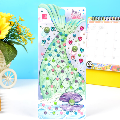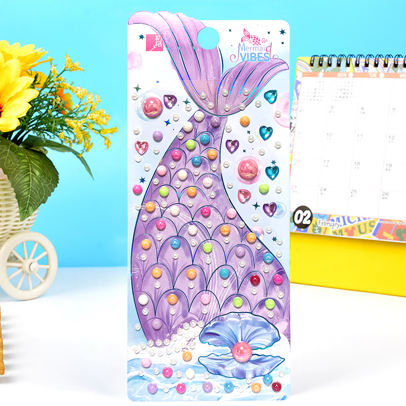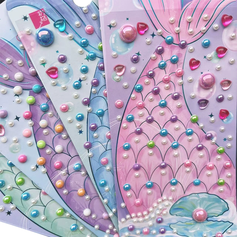 Cute girl children cartoon mermaid princess sticker paper fantasy pearl gem love diamond 3d three-dimensional sticky painting