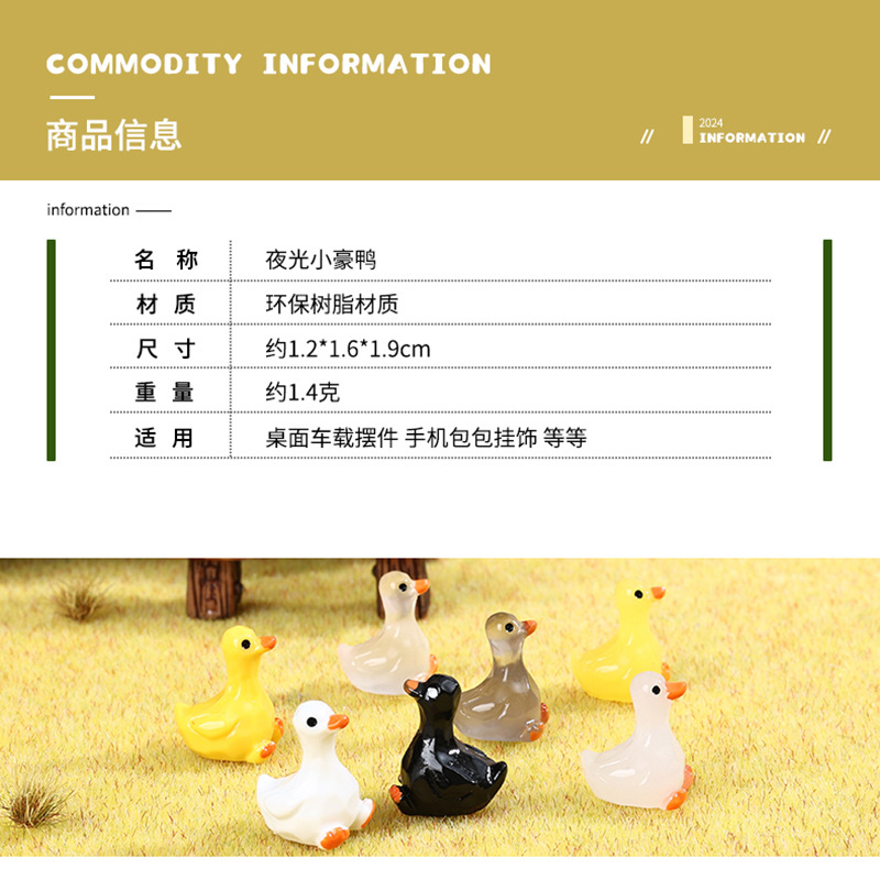 Cute luminous small luxury duck DIY jewelry micro landscape decorative resin accessories desktop car ornaments wholesale
