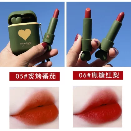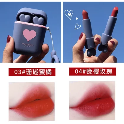 | nameOriginal | Cute mini earphone lipstick matte matte student girl heart moisturizing long-lasting non-fading discoloration lipstick a box |