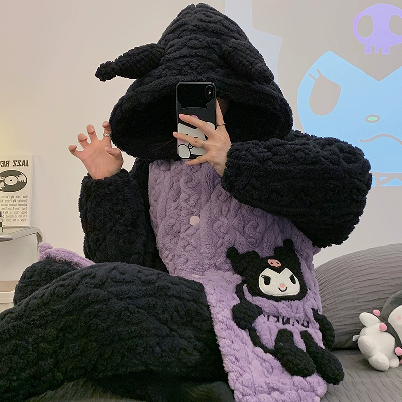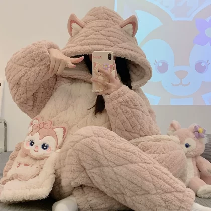 Cute pajamas for women thickened and velvet 2023 new flannel coral velvet three-layer quilted winter day suit home clothes