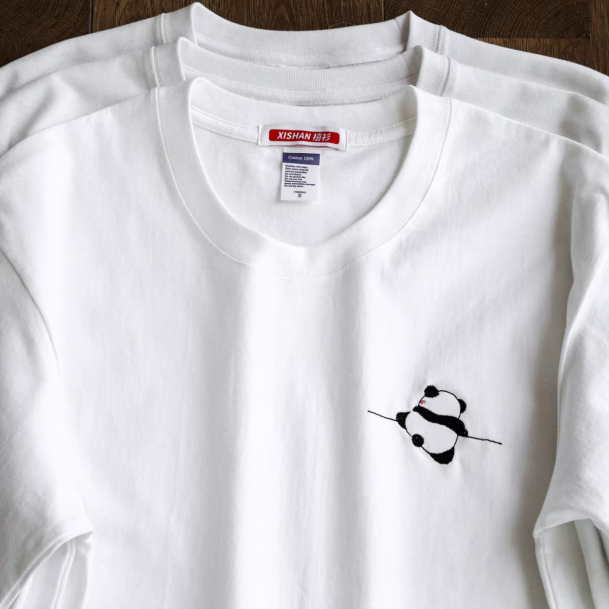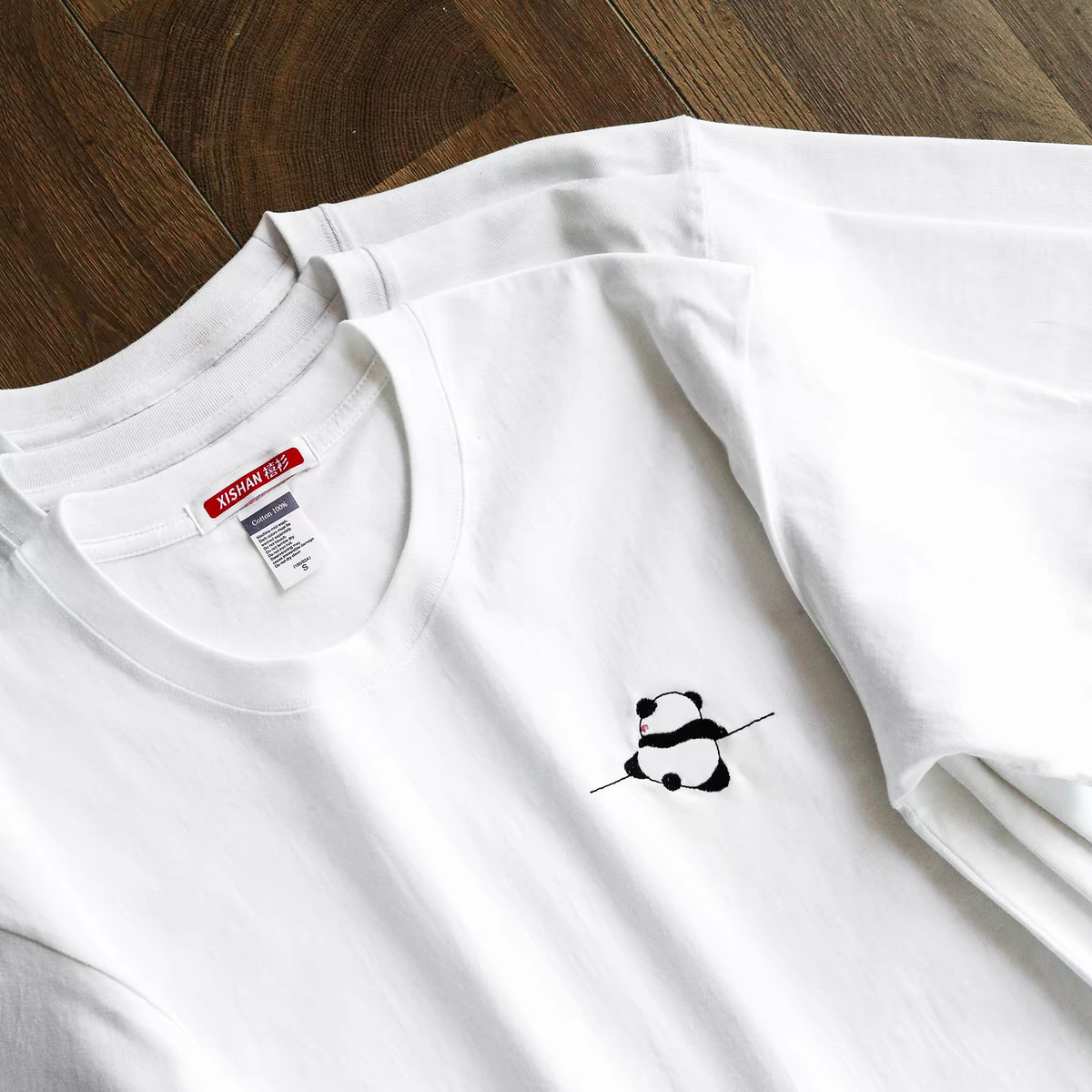 | nameOriginal | Cute Panda Flower Embroidered T-shirt Loose Simple Men and Women Couple High Texture Pure Cotton Top Base Shirt Shoulder |