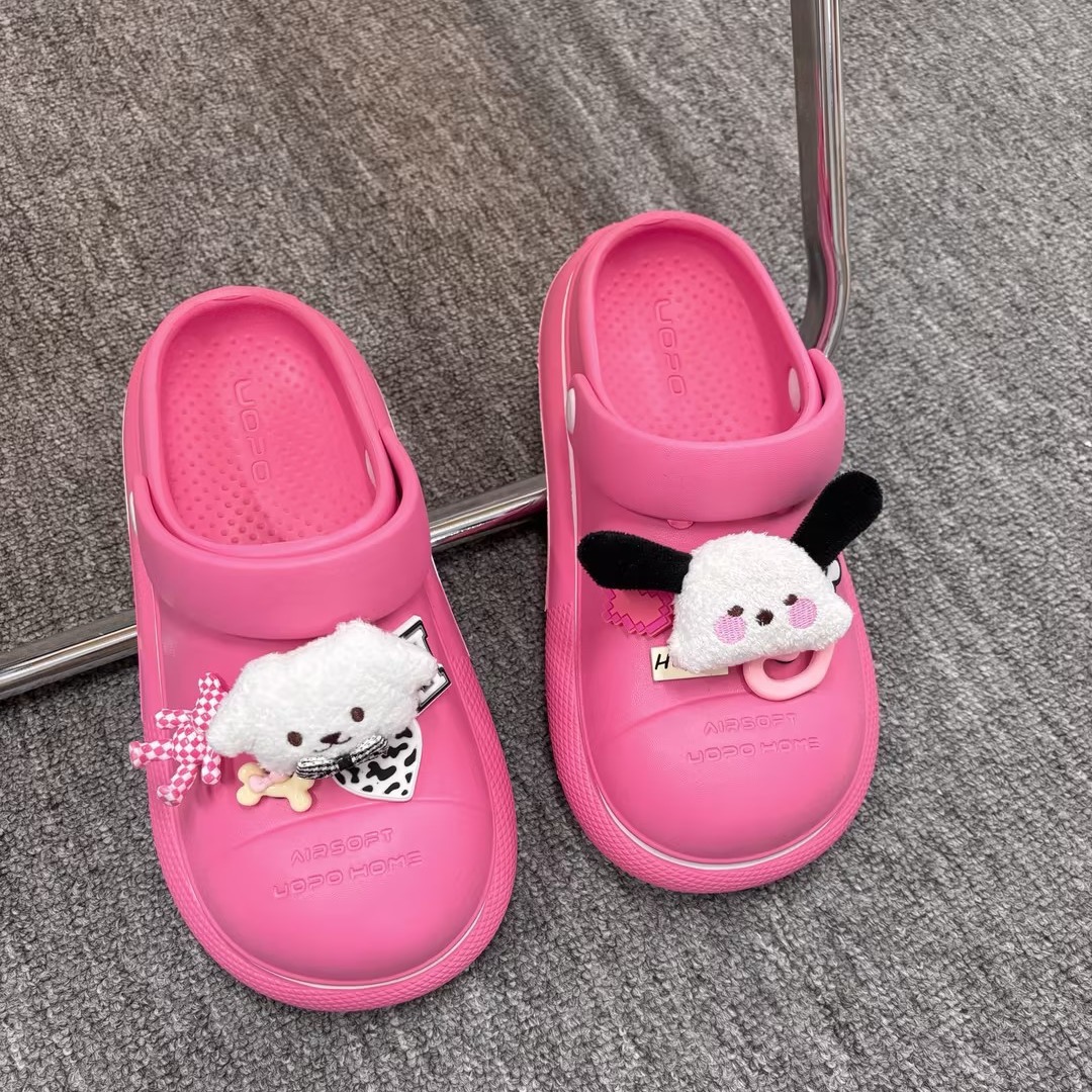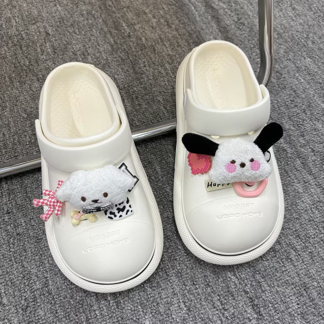 Cute Puppy Cave Shoes 2024 Summer New Outfit Non-slip Sandals and Slippers Two-wear Breathable Heightened Baotou Slippers