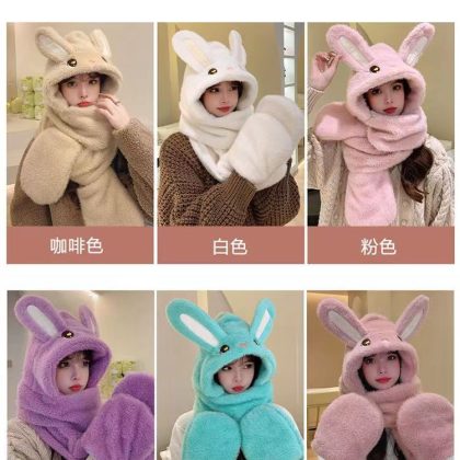 | nameOriginal | Cute rabbit ears hat scarf gloves three-piece set parent-child winter ear protection scarf three-in-one hat |