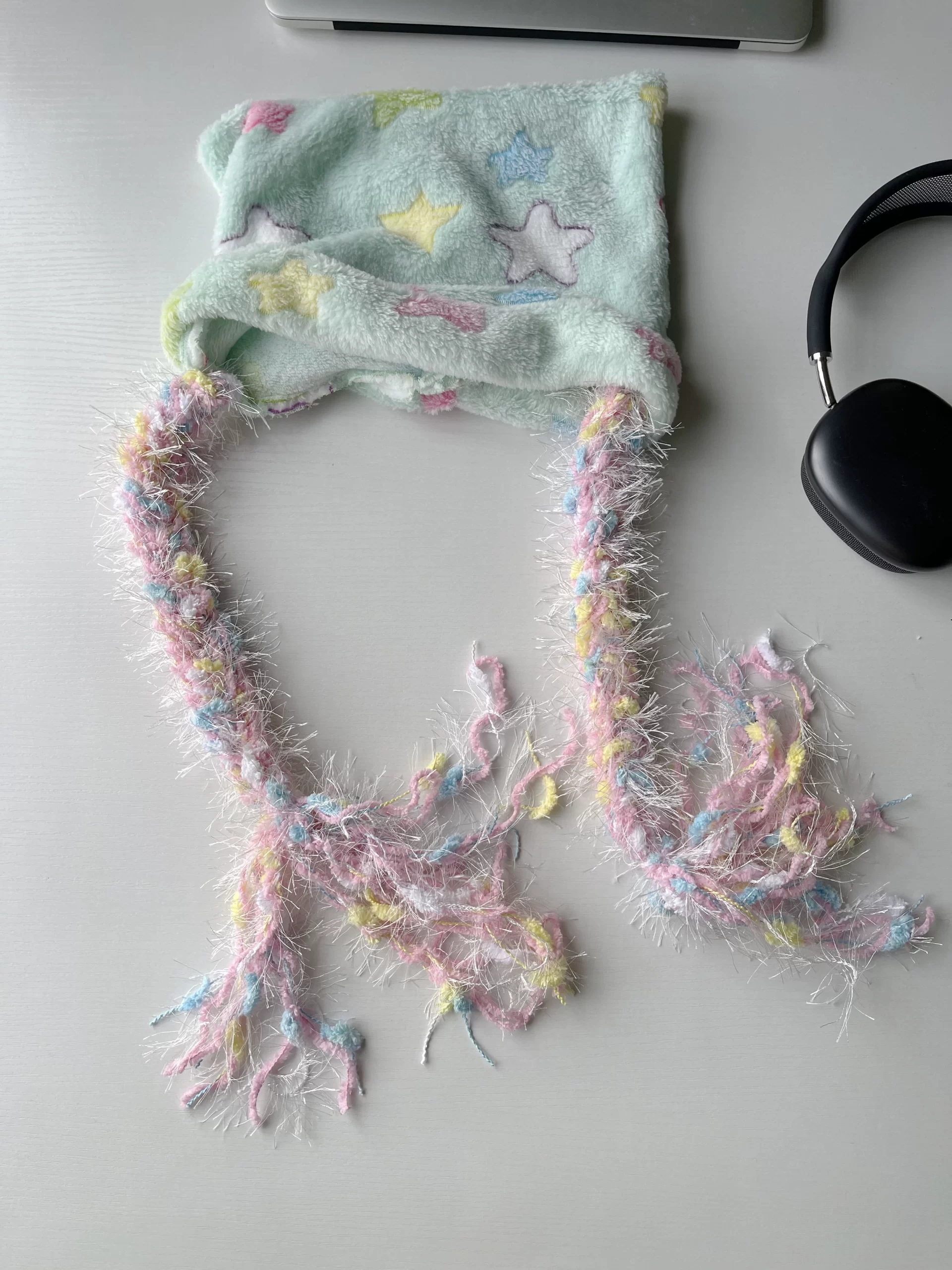 Cute soft girl colorful star cat ears braid one hat women autumn and winter retro millennium y2k scarf scarf