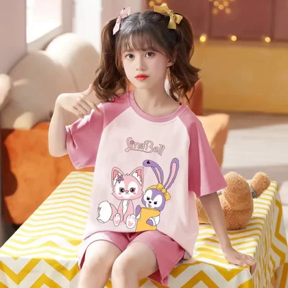 | nameOriginal | Cute summer pure cotton cartoon girls' middle and large children's pajamas |