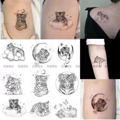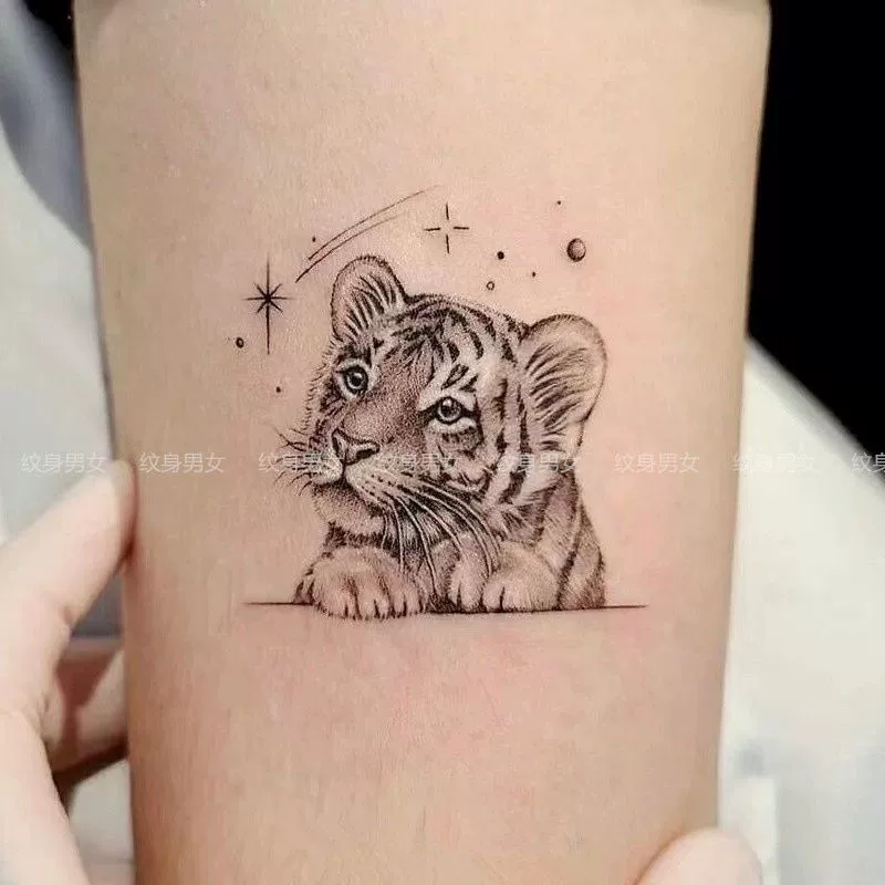 Cute tiger simple black and white internet celebrity style small fresh tattoo sticker