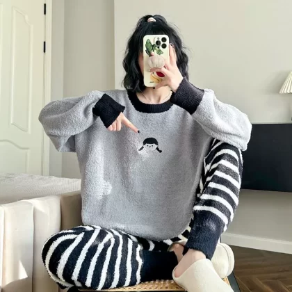 | nameOriginal | Cute women's autumn and winter half-velvet thickened warm pajamas |