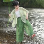 سراويل نسائية يومية من Hanfu [Coco Nai Nai] قميص فانوس برقبة دائرية مطرز بحمالة قابلة للتنفس بدلة يومية طازجة في الصيف