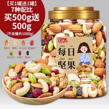 | nameOriginal | Daily nuts mixed dried fruit pure comprehensive 500g original flavor nuts canned pregnant women's snacks gift bag children's combination |