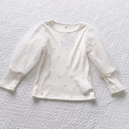 | nameOriginal | Daily order tail goods 110-130 girls' long-sleeved T-shirt top bottoming shirt yarn thread peach heart printing |