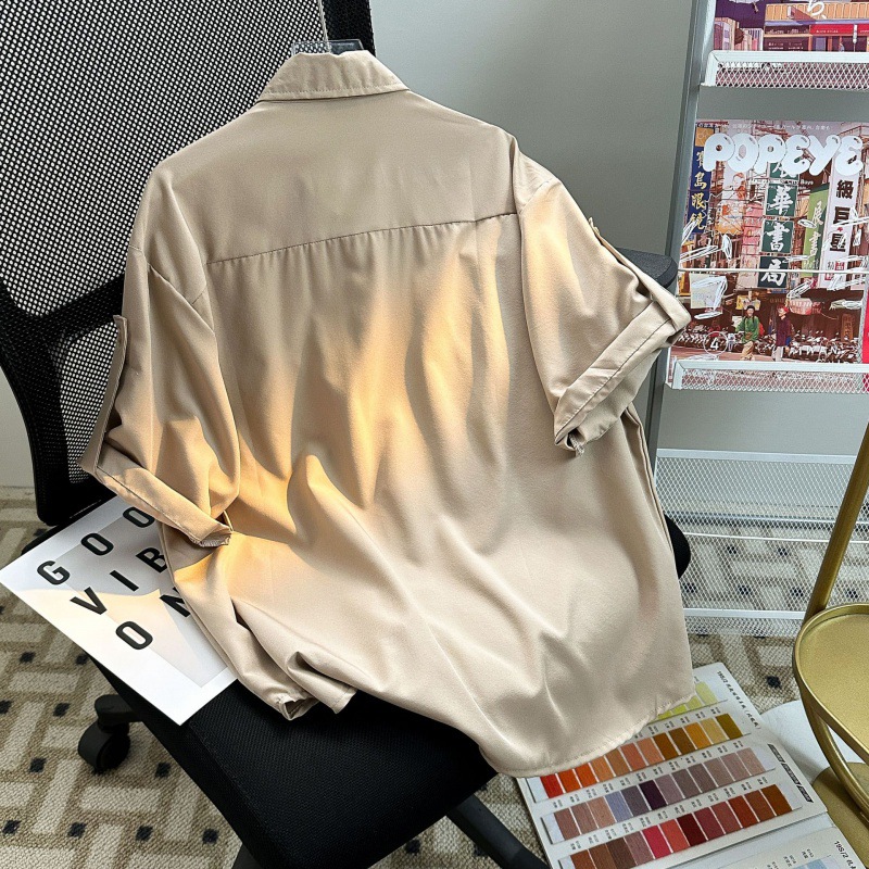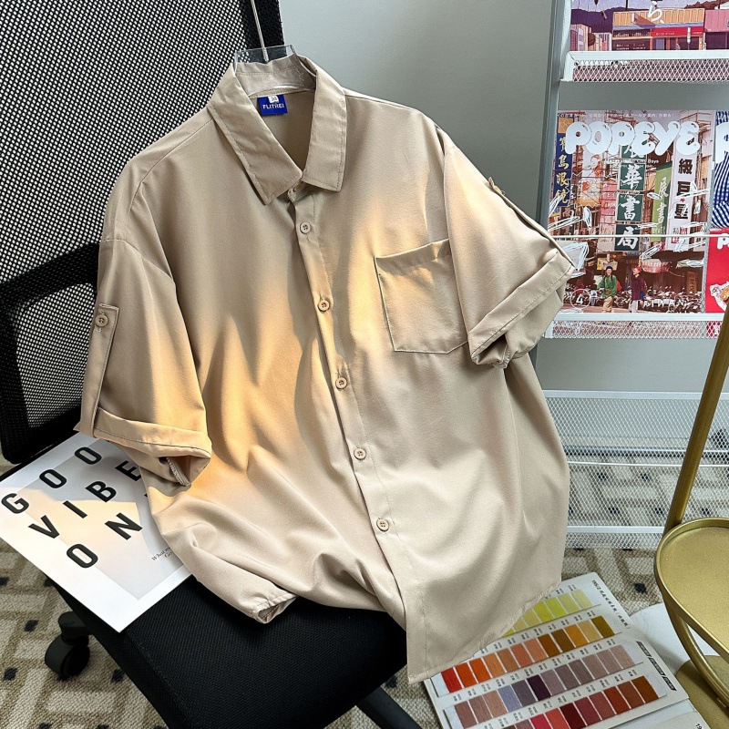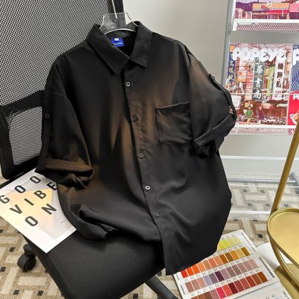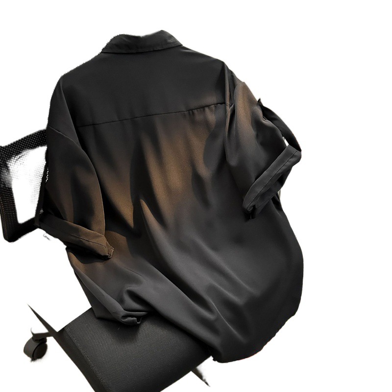 Daily Simple Ice Silk Curled Short-sleeved Shirt for Men and Women Summer Loose Draped All-match Couple Casual Half-sleeved Shirt