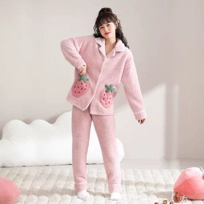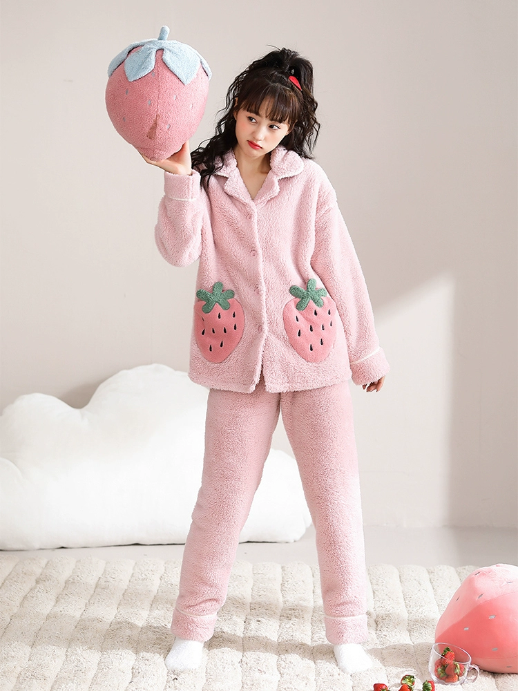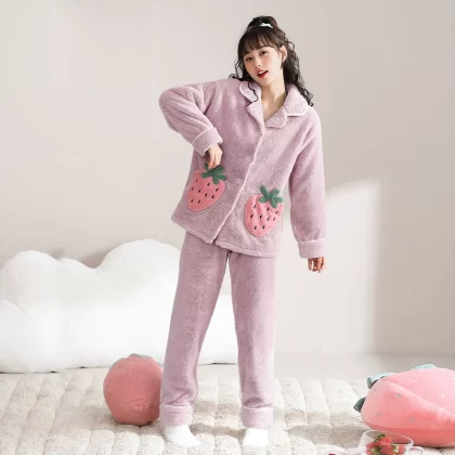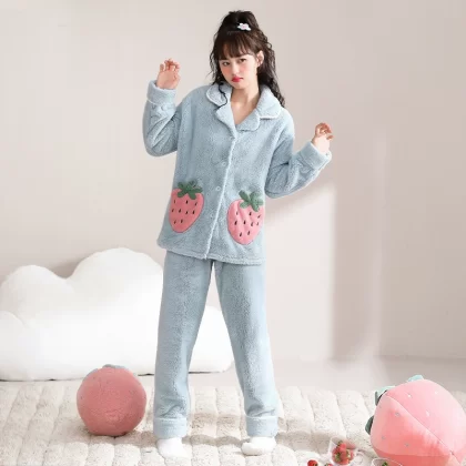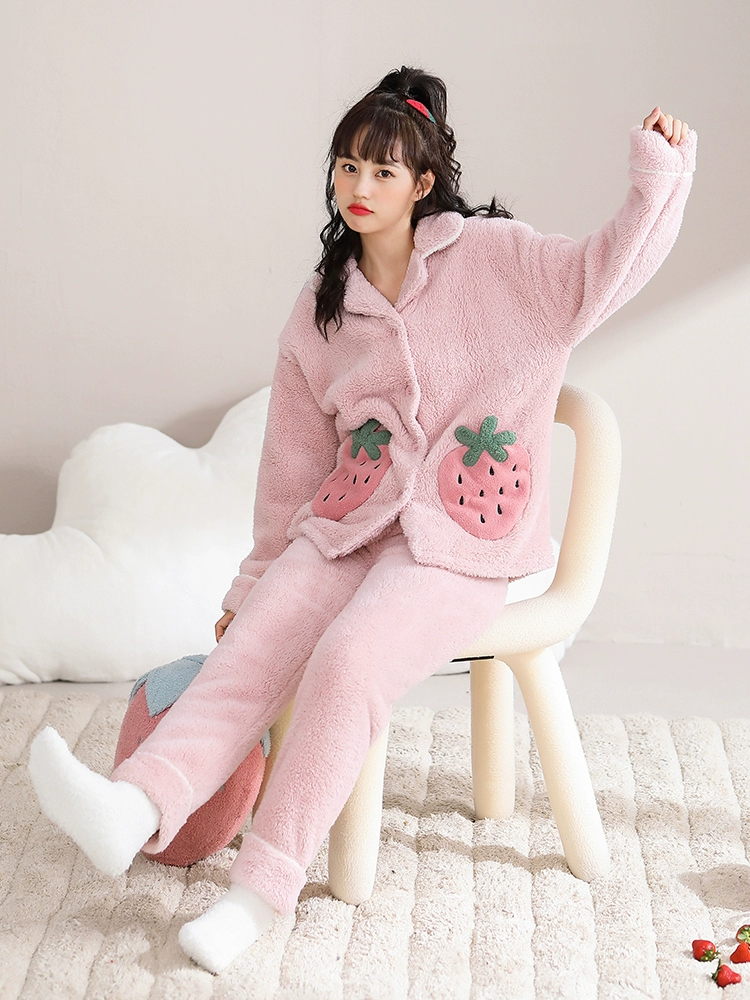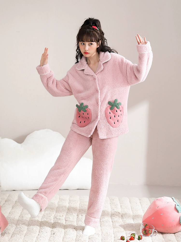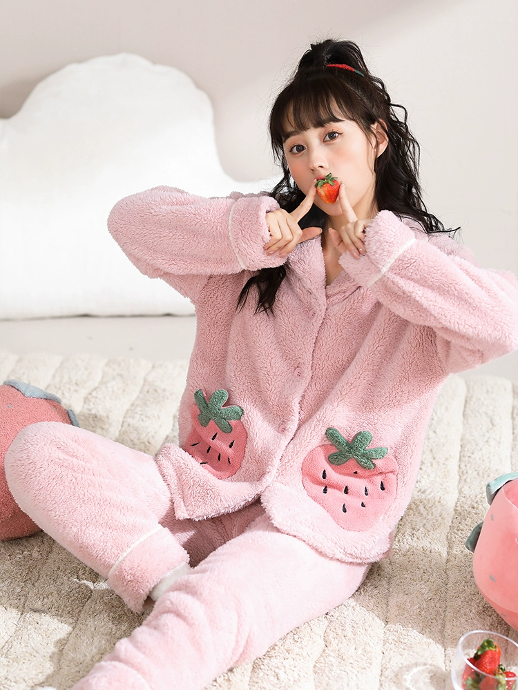 Daimonsi's new coral velvet pajamas for women in autumn and winter, thickened and velvet warm suits that can be worn outside women's home clothes