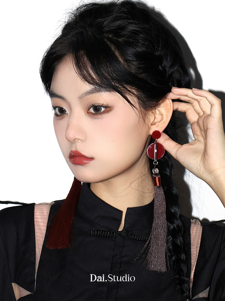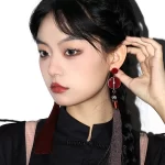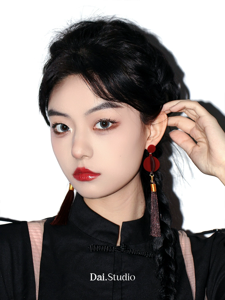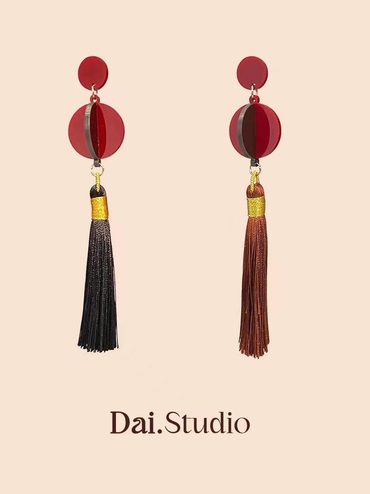 مجموعة Dai Group الأصلية “Big Red Lantern High hanging” أقراط السنة الجديدة الأقراط الصينية الجديدة أقراط ستيريو ثلاثية الأبعاد مشبك الأذن