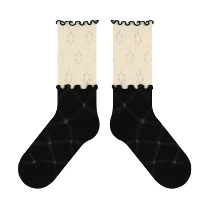 DAMAHOOV summer design sense contrasting hollow cassette women's socks hollow crystal socks ins line mid-calf socks