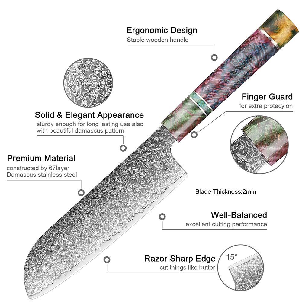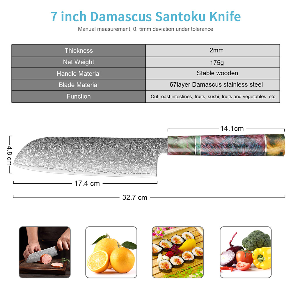 | nameOriginal | Damascus steel 7-inch Sande knife round handle stable wooden handle stainless steel Japanese knife meat cutter cross-border hair generation |
