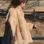 معطف فرو منك دانماركي قصير 2024 جديد للمرأة الشتوية تقليد المنك المخملي نمط الشباب الوقوف طوق الفراء العلوي للنساء
