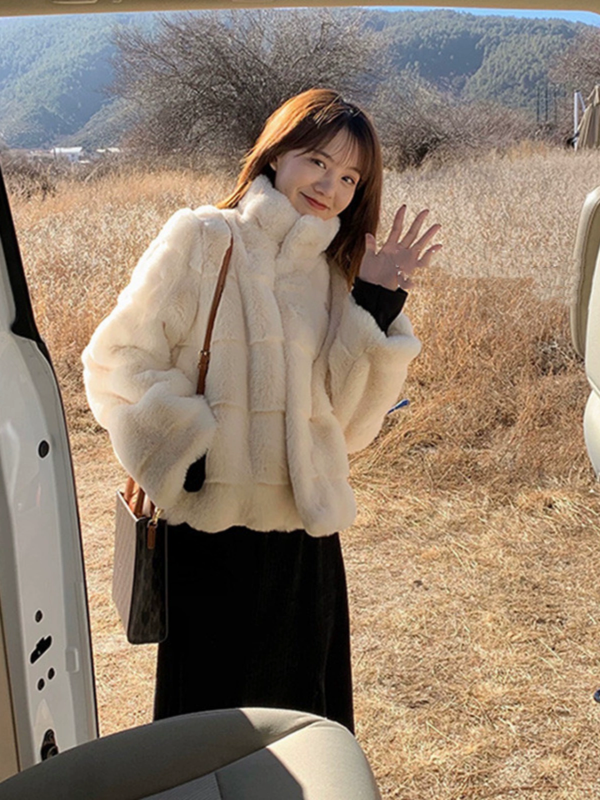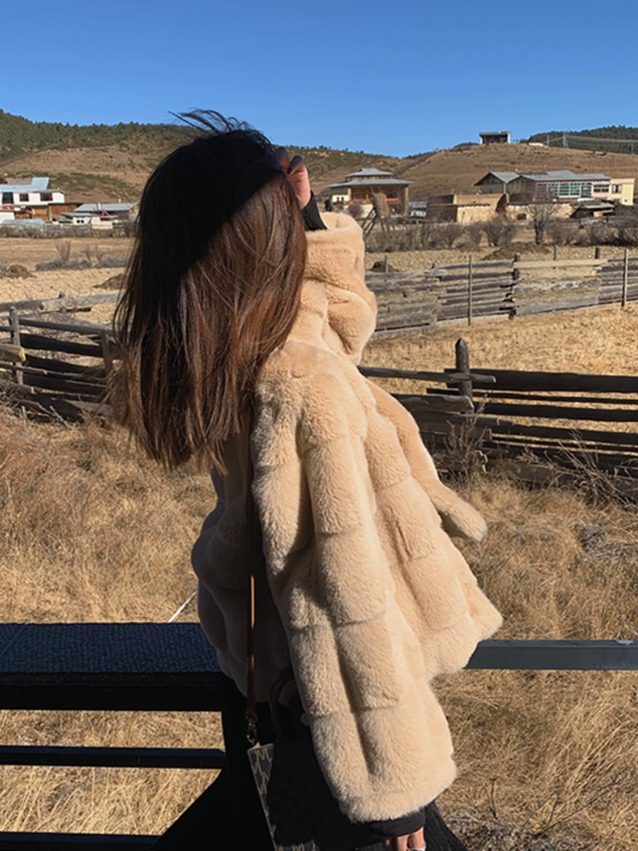 Danish mink fur coat short 2024 new women's winter imitation mink velvet young style stand-up collar fur top for women