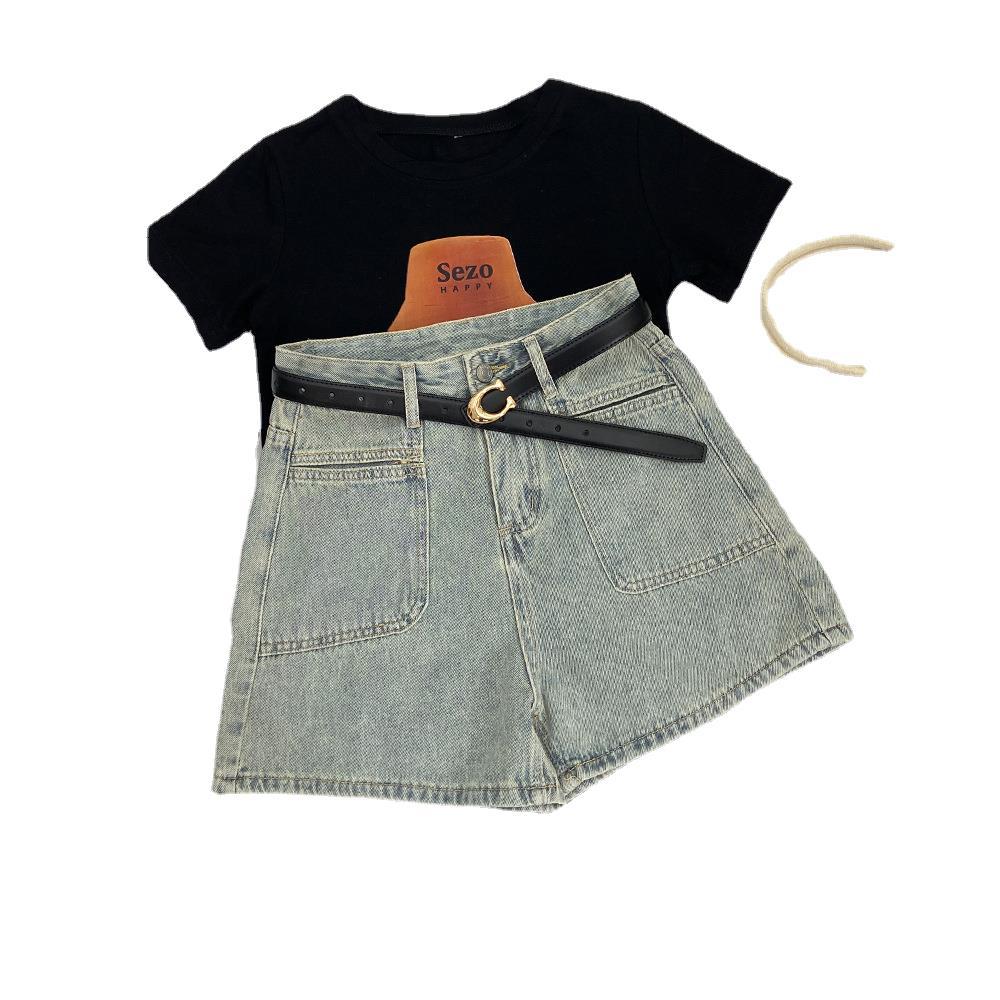 | nameOriginal | dark blue High Waist Denim Shorts Women's Summer 2024 New Loose Slimming A- Character Design Niche Hot Pants |