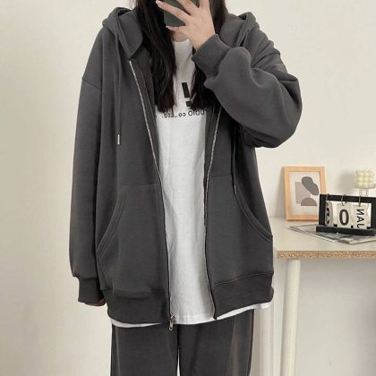 | nameOriginal | Dark Grey Sweatshirt Women's Fleece Coat Autumn and Winter New Korean Style Loose Lazy Style Long Sleeve Top Instagram Style Trendy |