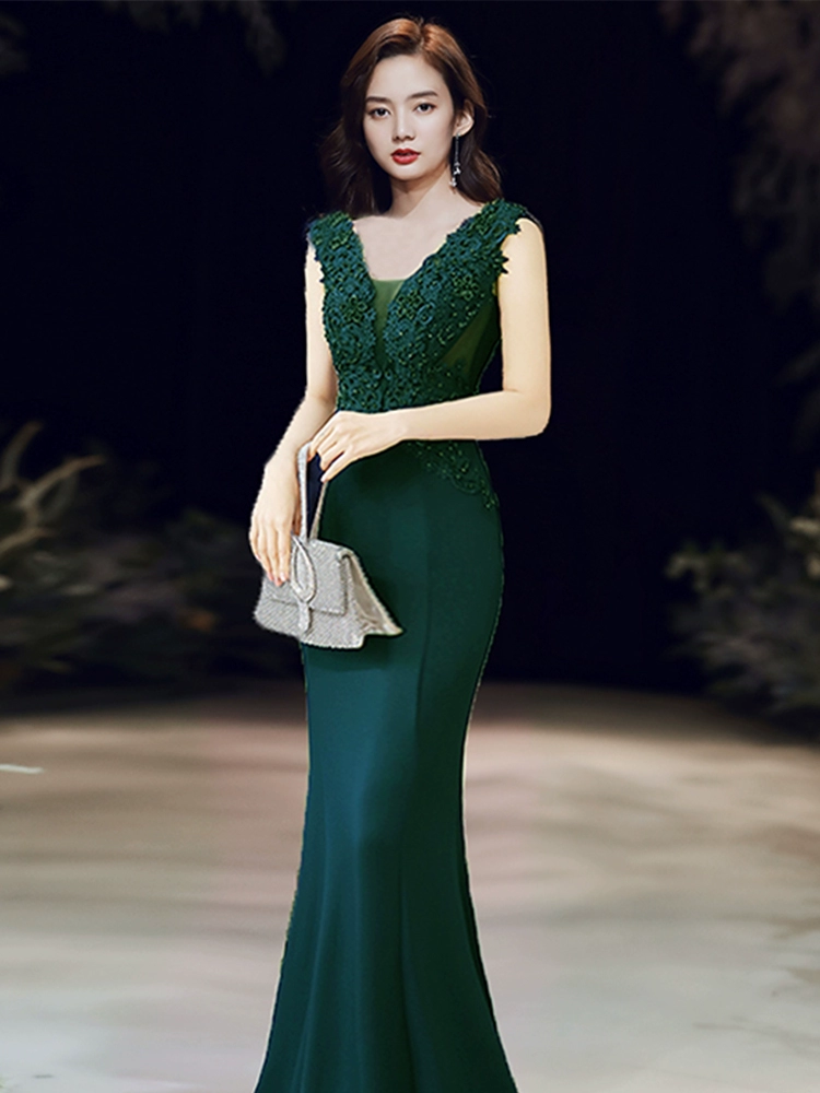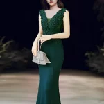 Deep v-neck, high-end, elegant and niche evening dress for socialites