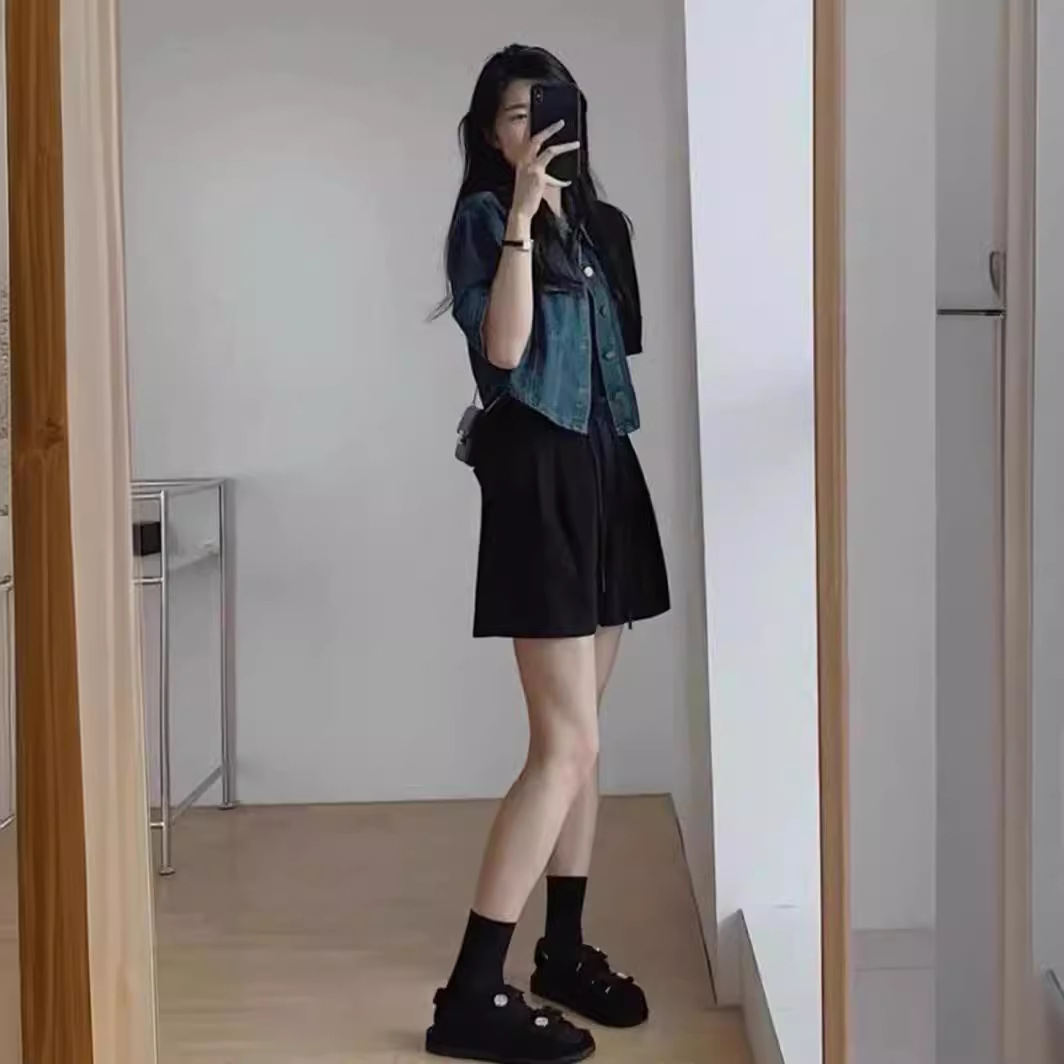 الدنيم معطف قميص المرأة قصيرة 2024 جديد الصيف قصيرة الأكمام سترة لباس خارجي حجم كبير معطف فوقي على الموضة الكورية