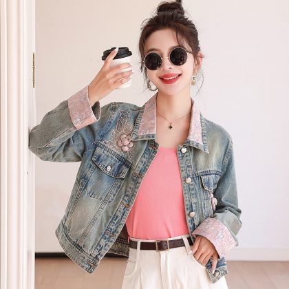 nameOriginal | Denim Coat Women's 2024 Spring New Arrival Embroidered Beaded Sequins Advanced Sense National Style Casual Denim Top Jacket |